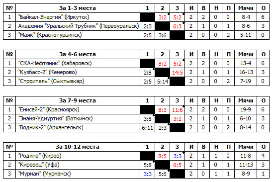 Результаты заключительных матчей:
